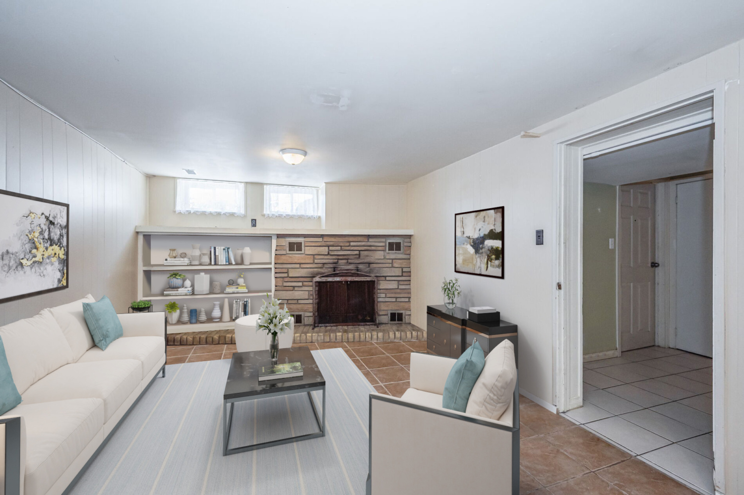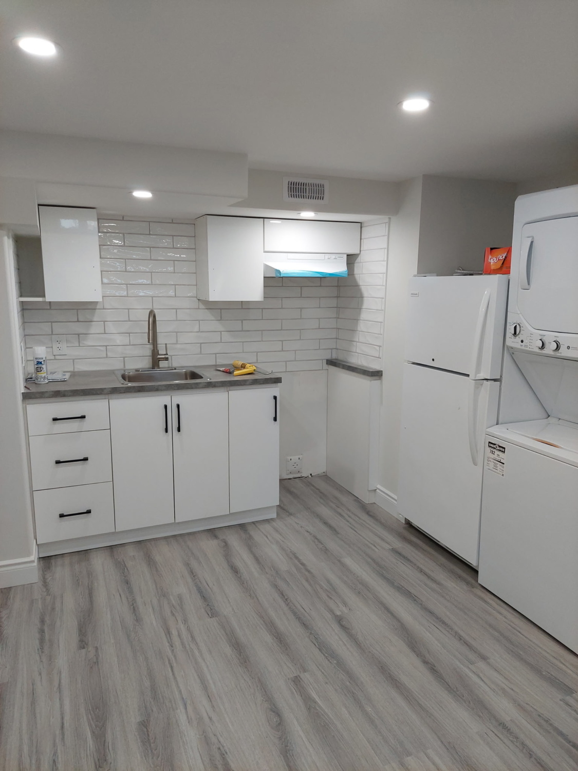 One bedroom apartment on the lower level, with separate entrance from a private patio at the back of the house. The apartment has a walk-in closet, newly renovated bathroom, full kitchen, living room, storage room, and shared laundry room. Located