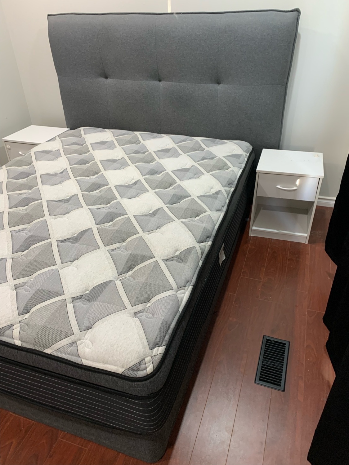 Picture of the room has old tenants stuff. The room will include a double bed, desk, desk chair and dresser. -