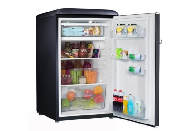 This small, cute black mini fridge is in excellent condition and was only used for one semester at university. It retails brand new for $ 399.00 + tax = $450.87. Selling for $280 – a great deal. It is quiet, has an adjustable thermostat, and is an excellent unit if you reside in a dorm or school residence. This retro fridge brings elegance or charm to any room. **SERIOUS INQUIRES ONLY** Thank you!
