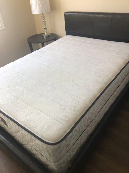 Not include the bed frame, only the mattress and box, condition is good.The sofa is solid with some scratches on the seat area. - Contact