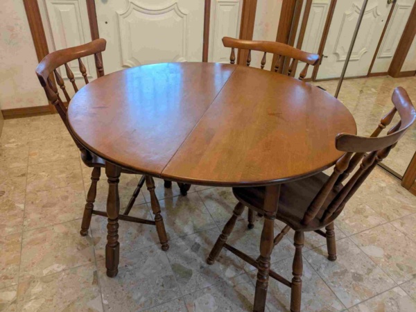 All wood table and 3 chairs, table size is 40″, can deliver if needed.