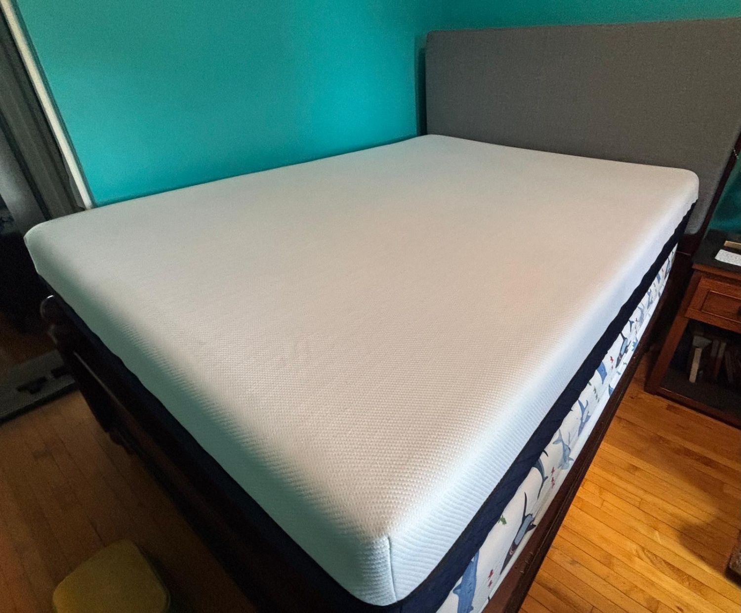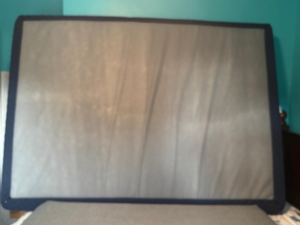 It is almost brand new; It was always used with mattress protector, plus the sheets to sleep on. Therefore, no stains or any smells on it. The mattress cover also has a zipper and can be removed to wash, keeping it in excellent clean condition.