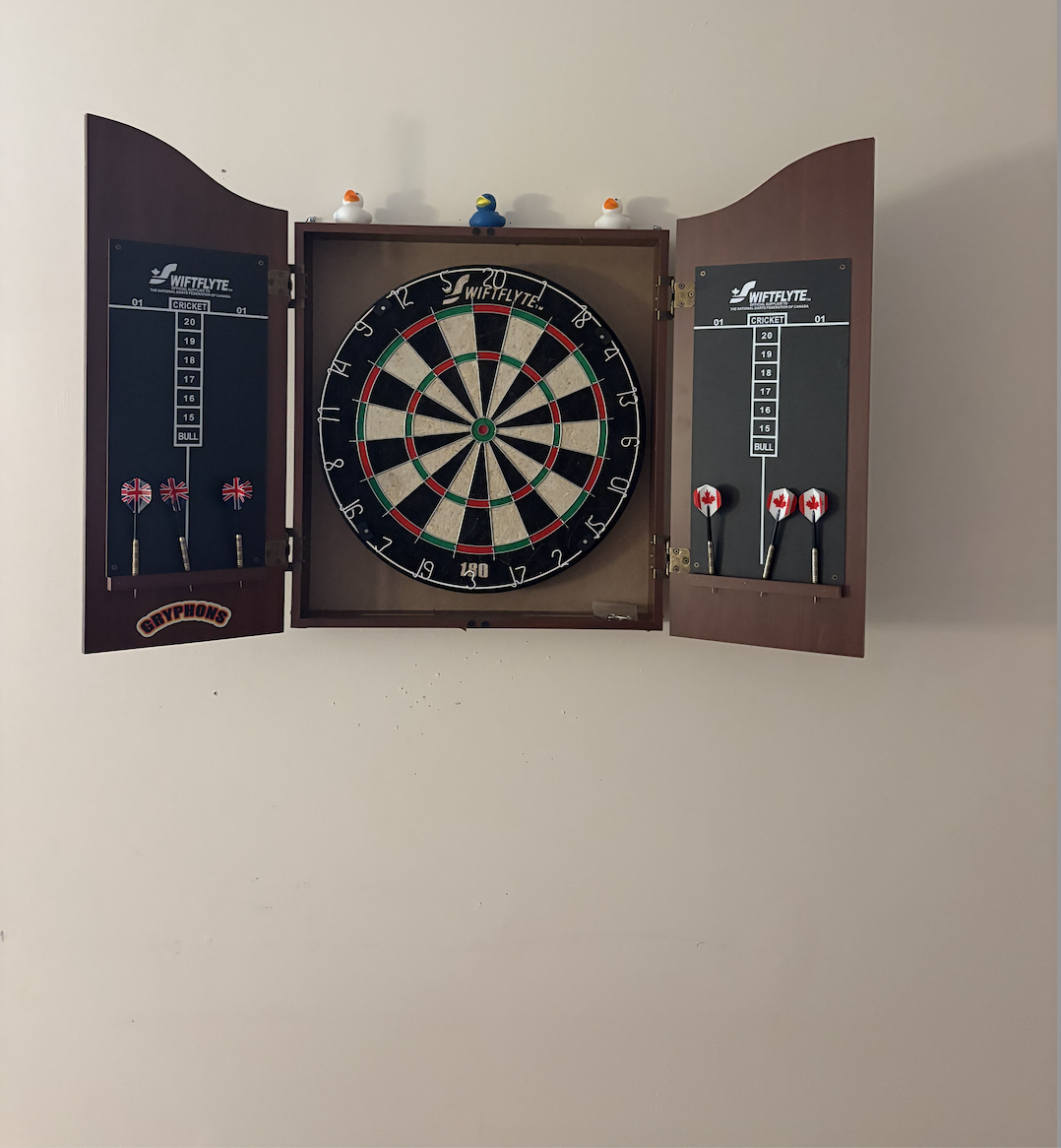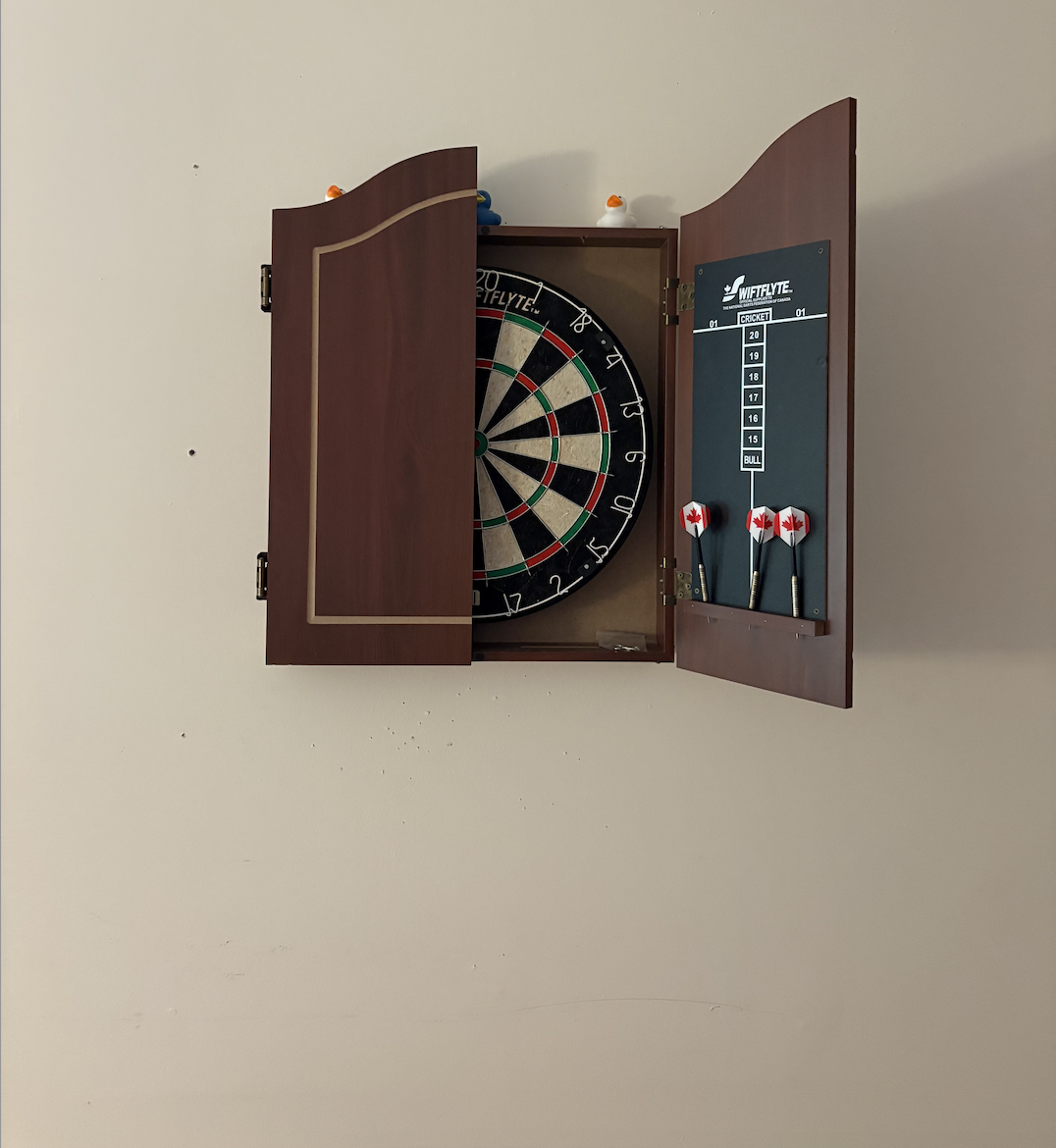 Moving out of the house, so trying to get rid of this dart board. Barely used, looks like new! Please shoot me an email if interested.