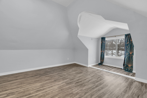 Additional conveniences include on-site parking and access to coin-operated laundry located at the lower level of the property. With its spacious layout, unique loft design, and proximity to downtown, this upper-level home is an excellent option for students and roommates seeking space and location in one appealing package.