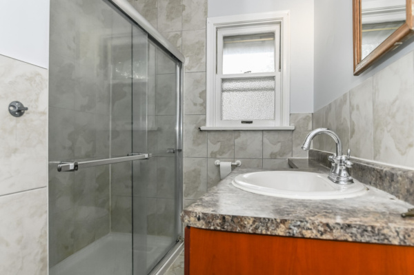 Relaxing Bathroom: Features a large, tiled shower and a separate tub for ultimate relaxation.