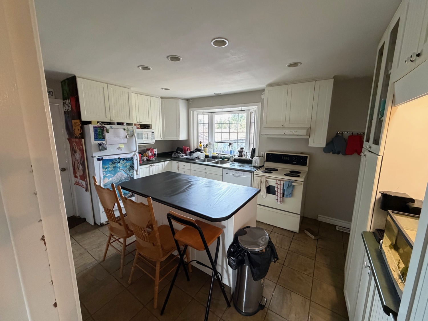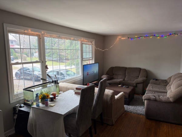 Additionally, 33 Moore’s proximity to several bus stops, within a 25 minute walk to downtown and Walmart, make this house is perfect for any student who values convenience, or any student without a car. There’s a shared living area furnished with couches and a table, with enough space to hang out or study, along with a functional kitchen that has plenty of storage and counter space.