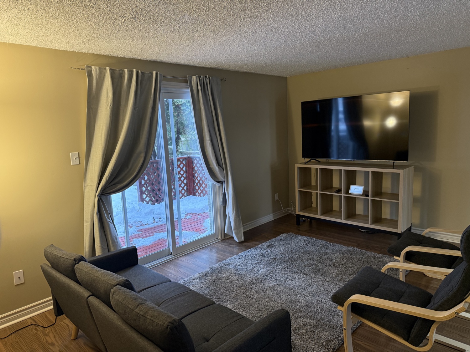 Shared kitchen and living area on the main floor and large garden to relax in on a sunny afternoon. Current renovations are being done but will be completed by May. (Painting and install of extra washroom on main floor)