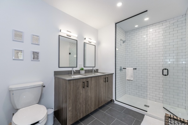 – A bathroom with a his and hers sink