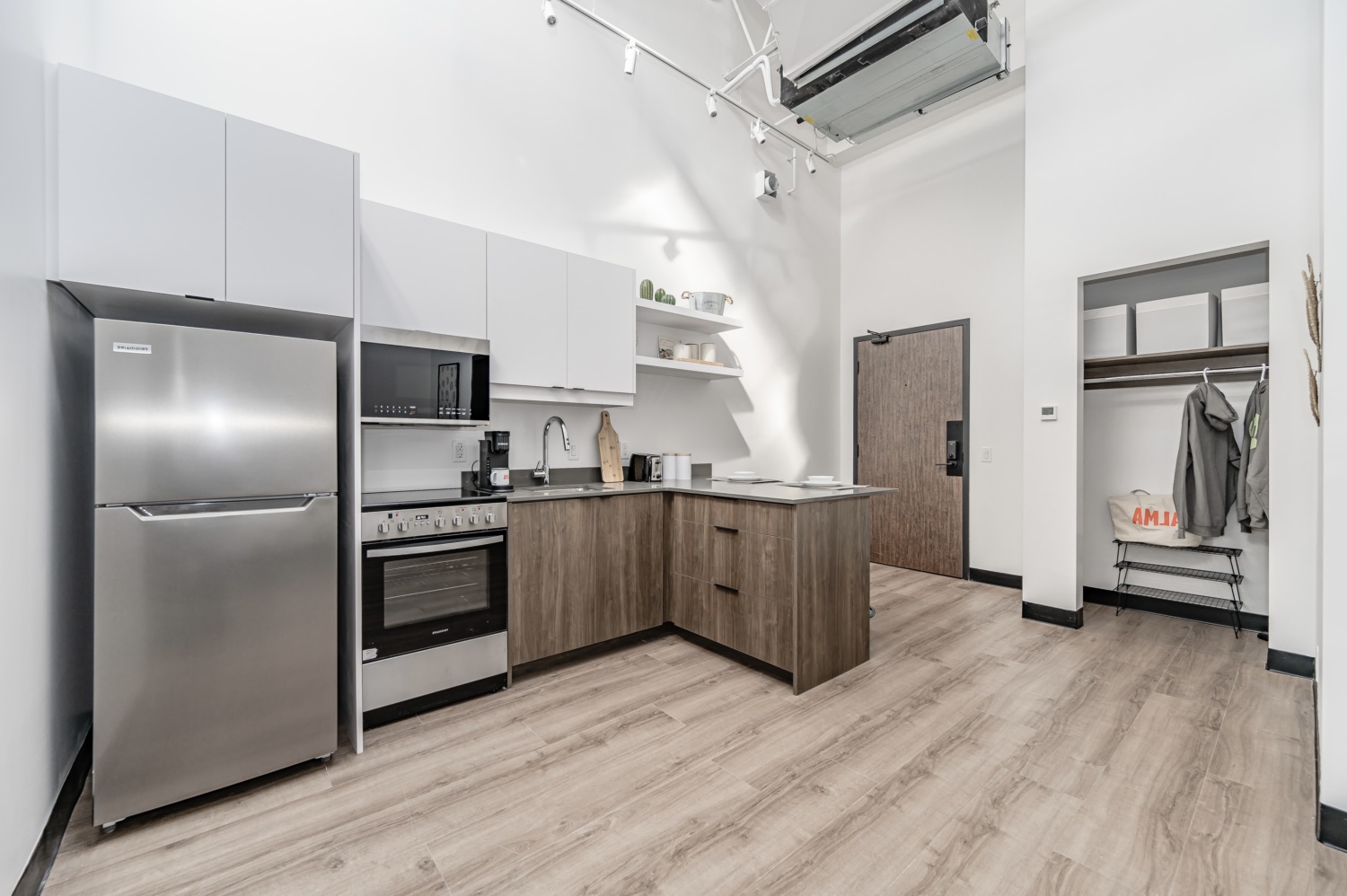 – Kitchen with full fridge, stove and microwave