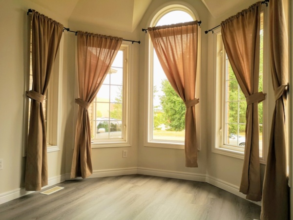 One large bedroom with a private full bathroom and a private side entrance, plus access to a spacious living room, dining room, study/den with bay window, and dinette.