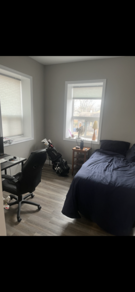 Three rooms available in a bright 5 bedroom condominium. The unit includes a large updated kitchen space, two full bathrooms and a spacious living and dining space. The location is perfect for students being a 10 min walk to downtown and bus lines to the university and other necessities.