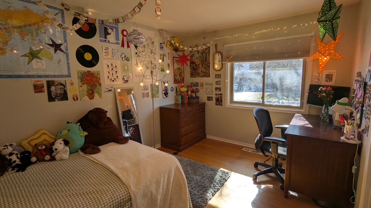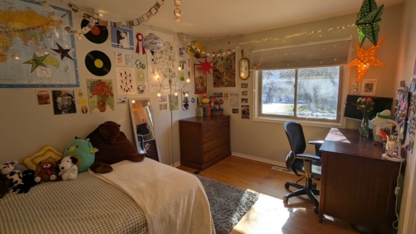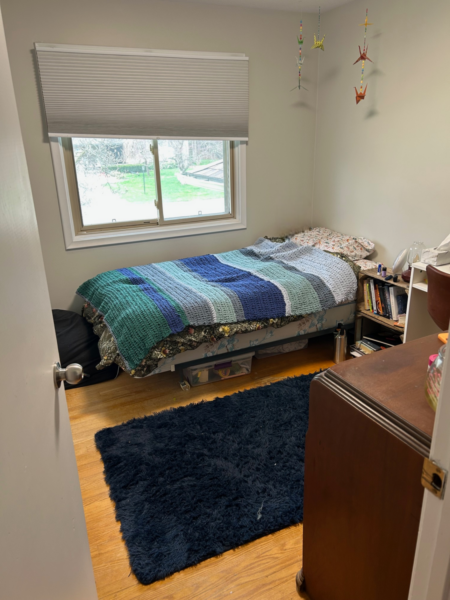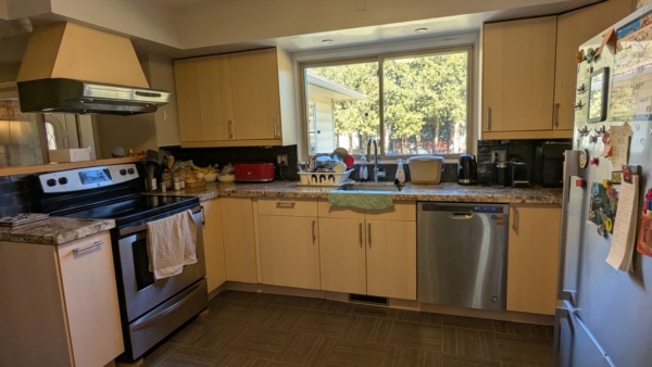 House includes dishwasher and modern kitchen appliances, shed for bike storage, washer and dryer, sunroom, air conditioning, two parking spots, spacious lawn. House fully furnished. Two bedrooms available in a four bedroom house with other rooms empty. Both rooms are upstairs. Available until end of August. - Contact