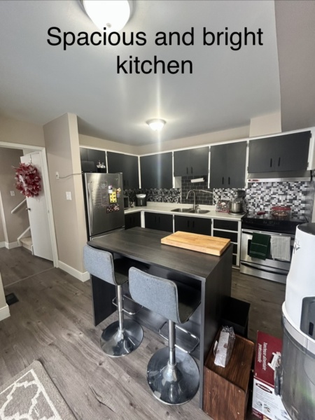 The house is a newly renovated townhouse about a 3-minute walk to Stone Road Mall and grocery stores, around a 20-minute walk to campus, and there’s a bus stop about a minute away that goes straight to the University of Guelph. It also has 3 full bathrooms, laundry in the basement, central A/C and heating, and a small yard. The kitchen and living room are shared spaces and will be furnished.