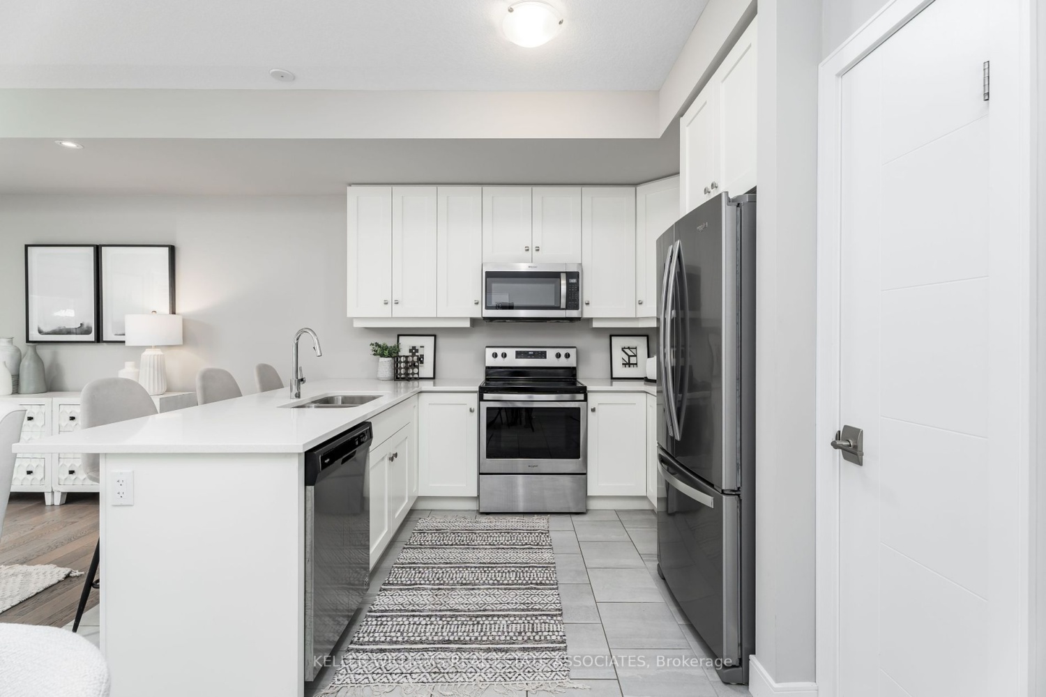 The residence showcases a thoughtfully designed open-concept main floor with patio access, interior garage entry and a full eat-in kitchen with stone counters and high-end appliances.