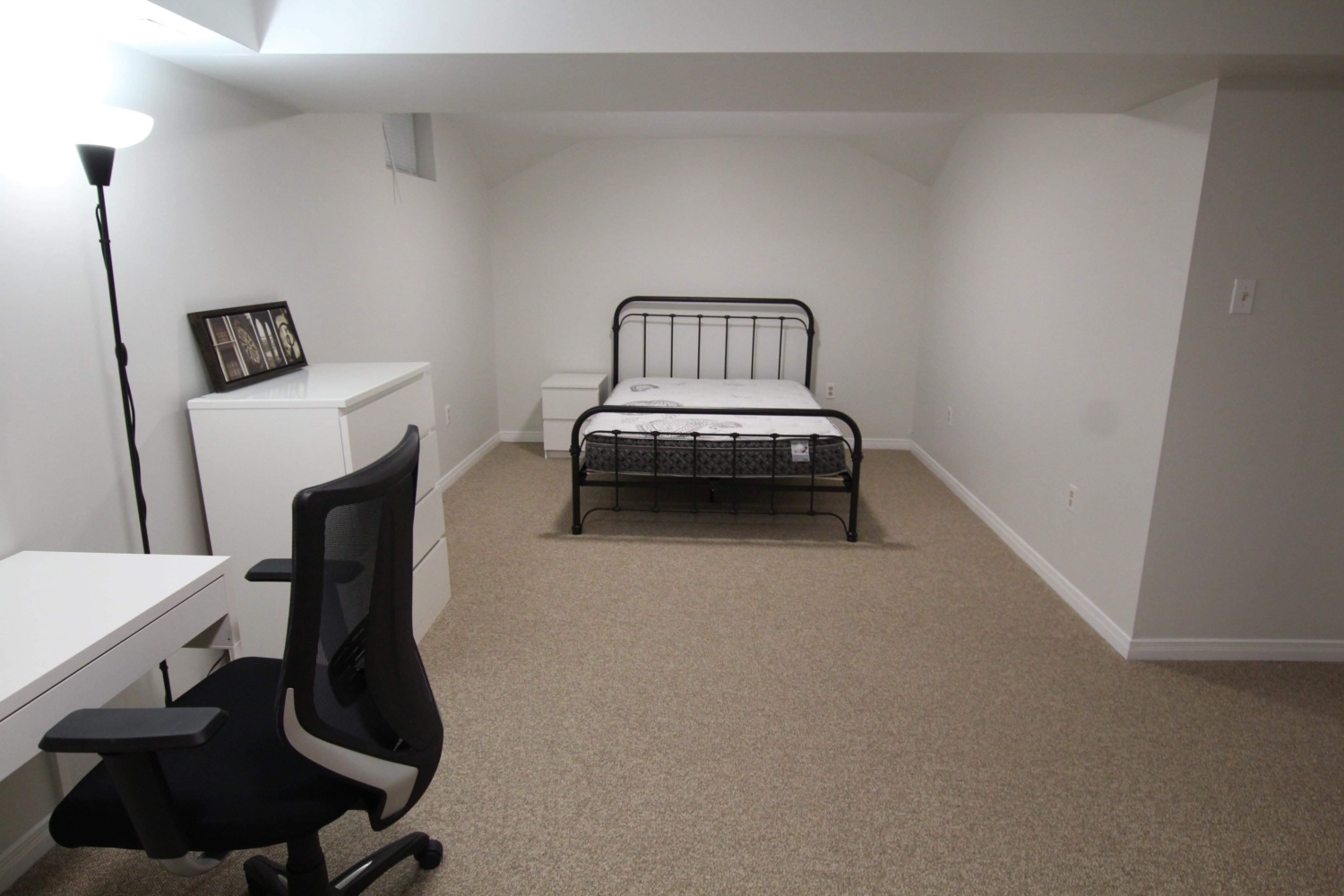 - One bedroom available in a shared house with three other fourth-year girls! The bedroom is in the basement and comes with its own full washroom. There are two parking spots available (garage and driveway). The house comes fully furnished, including the bedroom. There is a bed, dresser, nightstand, lamp, desk, and couch. All kitchen supplies, such as pans, pots, food containers, utensils, etc., come with the house. The rent is $954.23, including utilities. This is a sublet offering starting May 1st, but could start sometime later if needed, and finishes April 2027, with the possibility of continuing after (without subletting). Very easy access to bus stops (right outside the house) and a 5 minute ride/20 minute walk to the university.