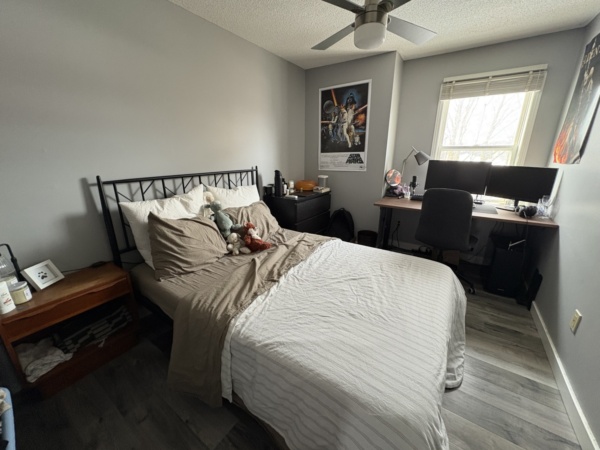 • Fully furnished bedroom (bed frame, desk. chair, dresser and closet)