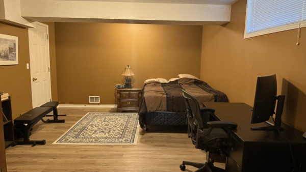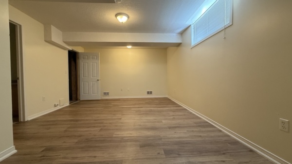 Newly painted, professionally cleaned, beautiful spacious one bedroom apartment in the lower levels of a house located in the most sought after SOUTHEND Guelph, available for 12-month lease starting now. Particularly good for student looking for a quiet, comfortable, convenient and safe place. There is one huge living room with two large windows overlook the backyard on one floor, and a large bed room with a bathrooms large window, and a kitchen with a window in the lower level. Your own entrance from the side of the house which also leads to a fenced backyard with a patio for BBQ etc. One parking space. Central air, water softener, your own laundry. Very safe and pleasant neighborhood. Few minute walk to bus stop. Within 12 minute walking distance to shopping area (Zehrs, Food Basic, Shopper’s Drug Mart, LCBO, Bank etc), Good Life, city library. There are miles of nature trails, sports fields and playground for you to enjoy. On bus route, and 12 minute drive to 401 and 6 minute drive to hwy 6. 8 minute drive from UofG. n/pets, n/smkg. $1550/month plus utilities.