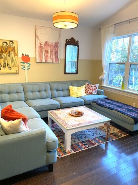 This is a bright, modern, colourful house with 4 available bedrooms.