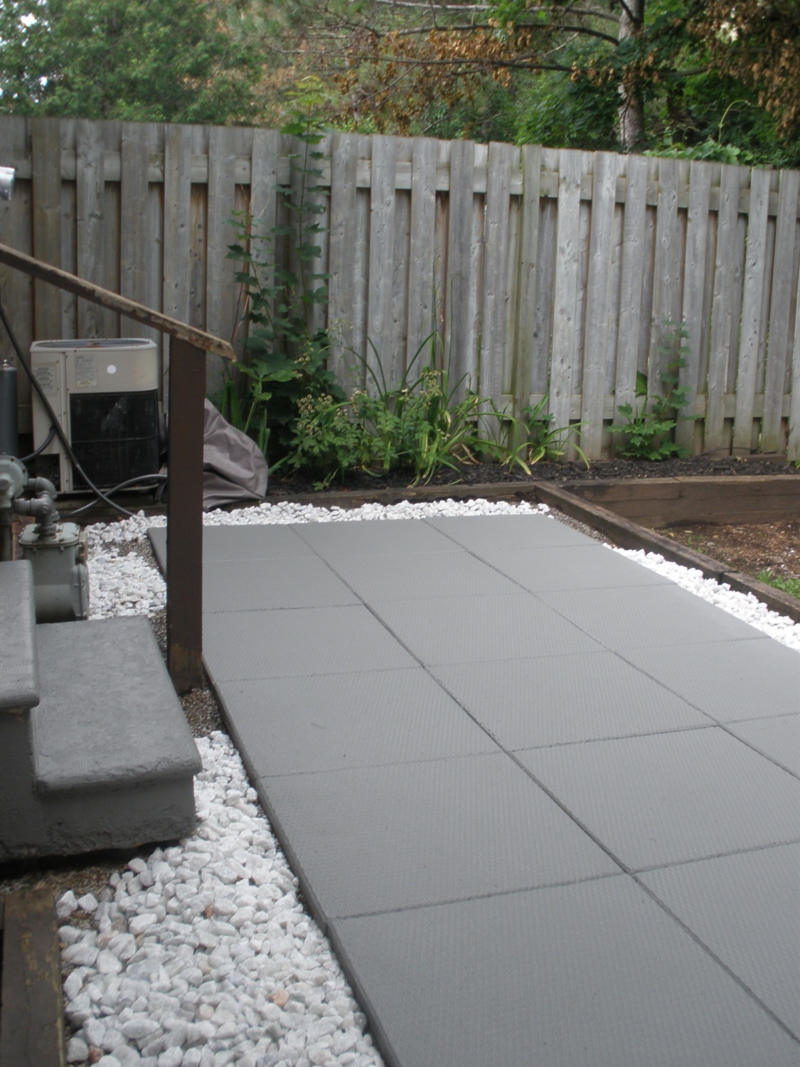 Exterior: Private patio with landscaped garden area (partially fenced).